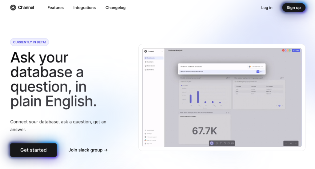 Channel is an AI tool that simplifies the process of getting information from data sources, by allowing to ask questions in plain English from multiple sources and merge them into valuable insights.